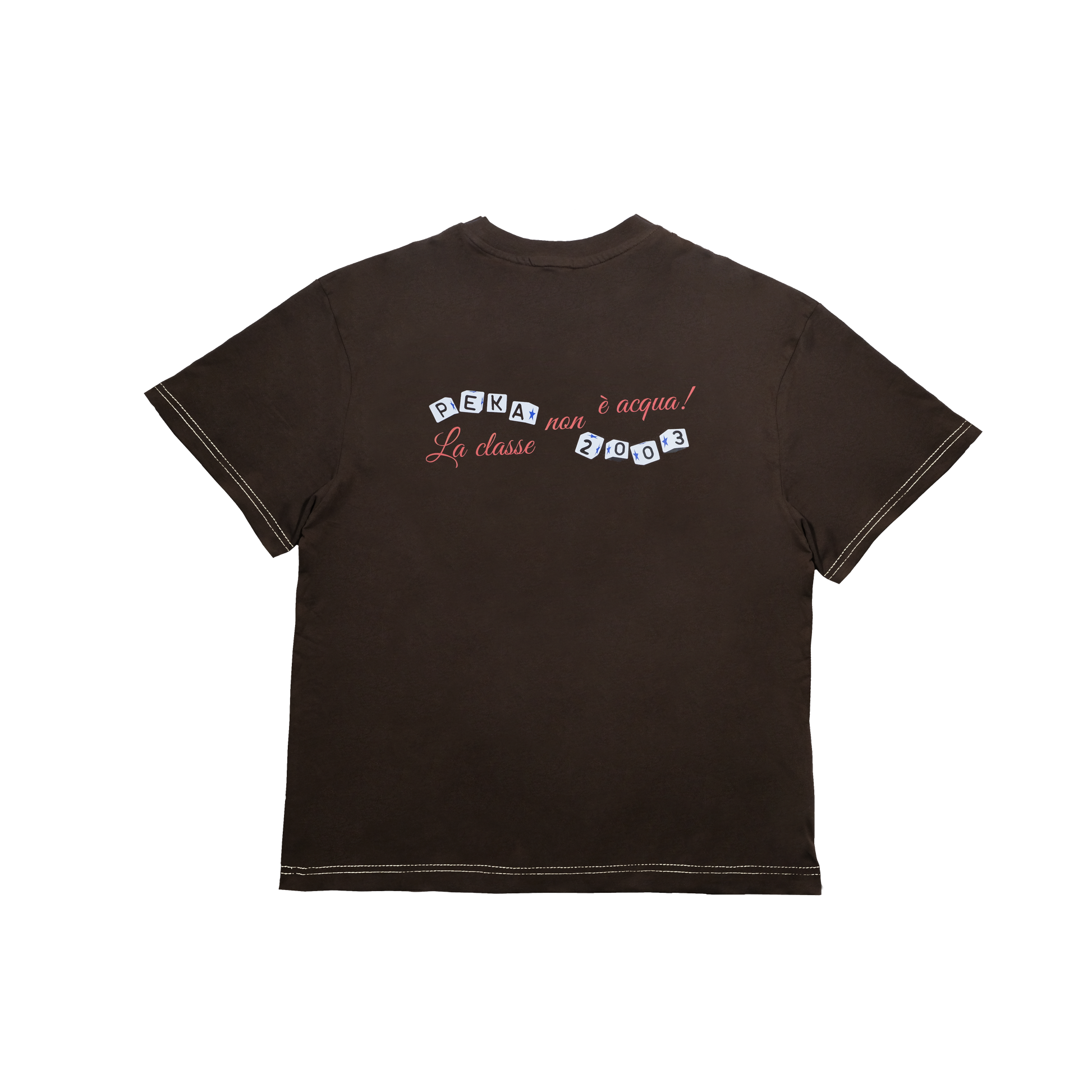 - Białe obszycia na rękawach i spodzie koszulki